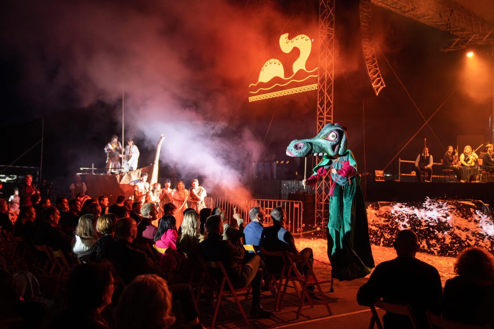 Dogodek se bo začel z edinstveno plesno-glasbeno predstavo Argonavtske zgodbe, ki jo bodo oživeli plesalci, umetniki Cirkusa Fuskabo, pevci mešanega pevskega zbora Mavrica in glasbeniki Big band Vrhnika. S prepletom plesnih elementov na tleh in v zraku vas bodo popeljali v mitski svet junakov, poguma in domišljije. Sodobna interpretacija starodavne zgodbe bo z gibanjem, svetlobo in glasbo ustvarila čarobno vzdušje, vredno slavnostnega začetka festivala.
