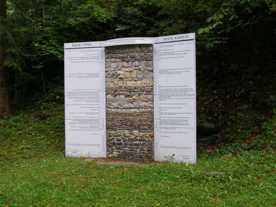 Kucler’s Quarry, which was declared a natural geological monument in 1991, is located on the margins of the Ljubljana Marshes in the village Lesno Brdo between Brezovica and Vrhnika. Named after its former owner, the quarry was mined in the past centuries for black and grey limestone formed during the Triassic era – approximately 225 million years ago. Due to the beautiful black-white contrast provided by the calcite veins, this rock has always been desirable as architectural stone. In Ljubljana, there are several ornaments carved from stone mined in the quarry, among others the “Black King” in St James’s Church and the statues of two giants adorning the portal of the seminary.