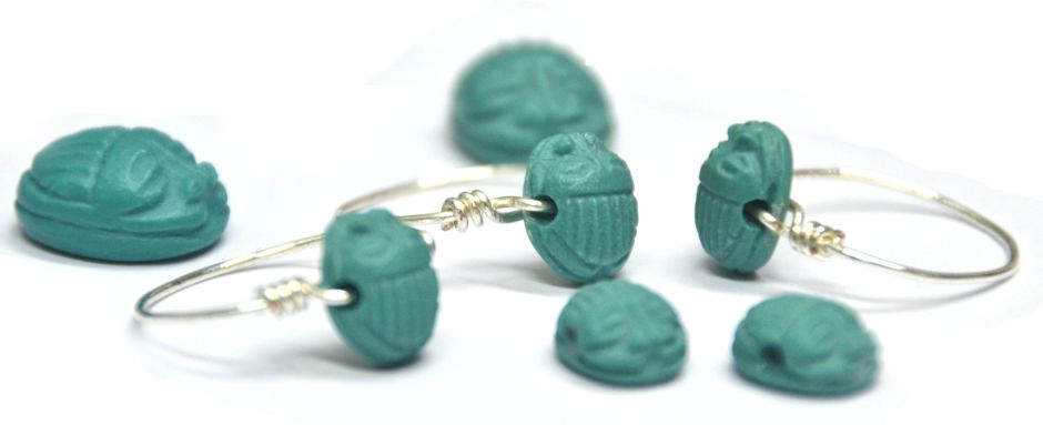 The scarab – dung beetle, which according to the Egyptian mythology rolls the sun across the sky, was the most important form of amulet in ancient Egypt. The scarab was an Egyptian symbol of the sun, the resurrection of the dead; it represented vitality and protected against spells. A pendant in the form of a scarab was worn on a string or metal wire around a finger or neck.